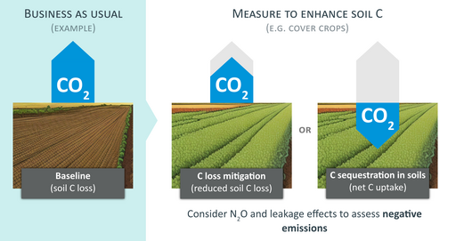 Sequestration of carbon in soils can lead to climate change mitigation or even negative emissions. However, not all measures enhancing soil C result in such C uptake from the atmosphere or negative emissions. At some sites, measures may only reduce C losses (C loss mitigation) or may be counterbalanced by elevated other greenhouse gas emissions. A more rigorous use of the terms surrounding C sequestration in soils is prerequisite in order to enhance understanding of climate change mitigation efforts in the land-use sector among stakeholders in science, politics, and society.